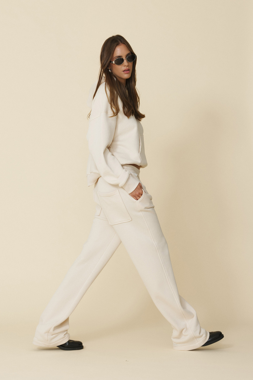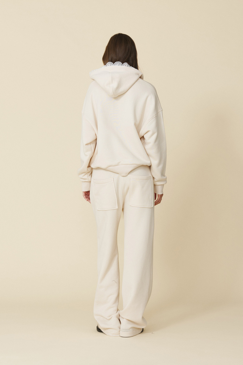 HOME - CLOTHING - Pants - Casual-Beige Pants With Lace Inserts