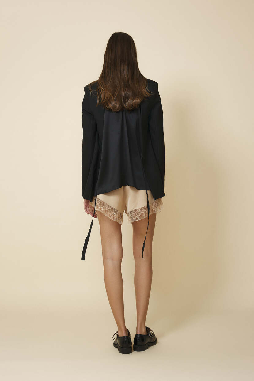 HOME - CLOTHING - Pants - Shorts-Beige Shorts Finished With Delicate Lace Trim At The Hem - Pre-Spring26