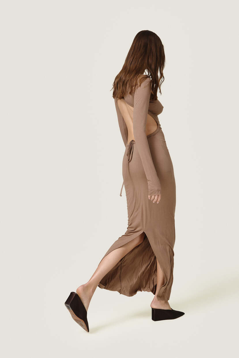 HOME - CLOTHING - Dresses - Maxi-Beige Backless Dress With An Adjustable Lace-Up Detail - SS26