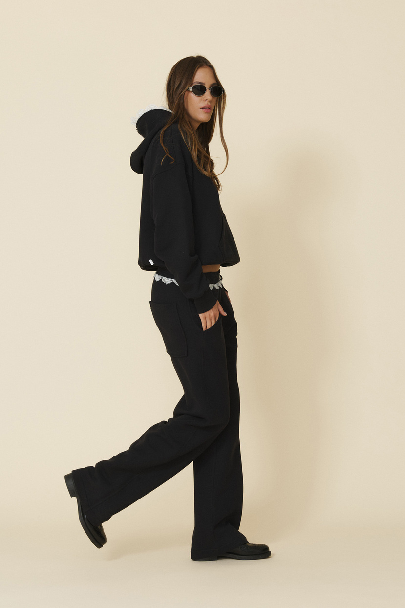 HOME - CLOTHING - Tops - Sweatshirt-Black Oversized Sweatshirt With Lace Inserts