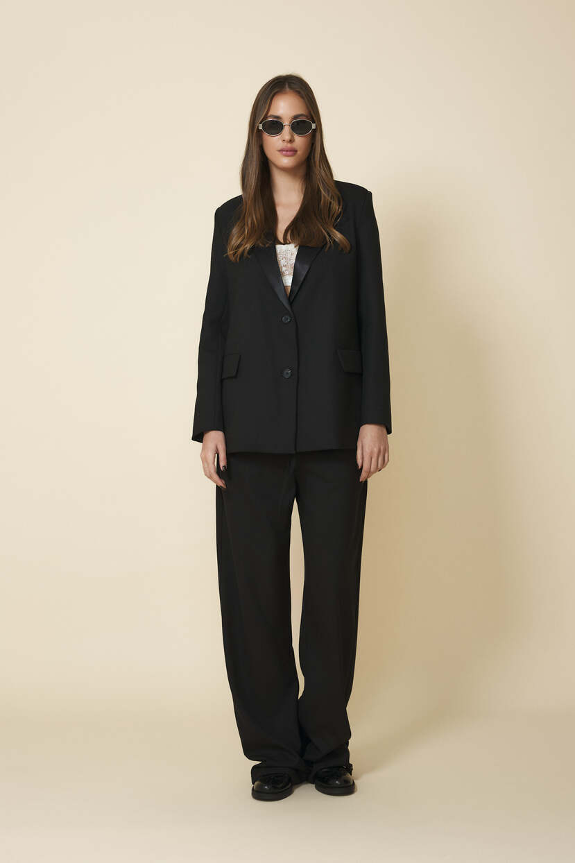 HOME - CLOTHING - Pants - Casual-Black Relaxed-Fit Trousers With Elasticated Hems
