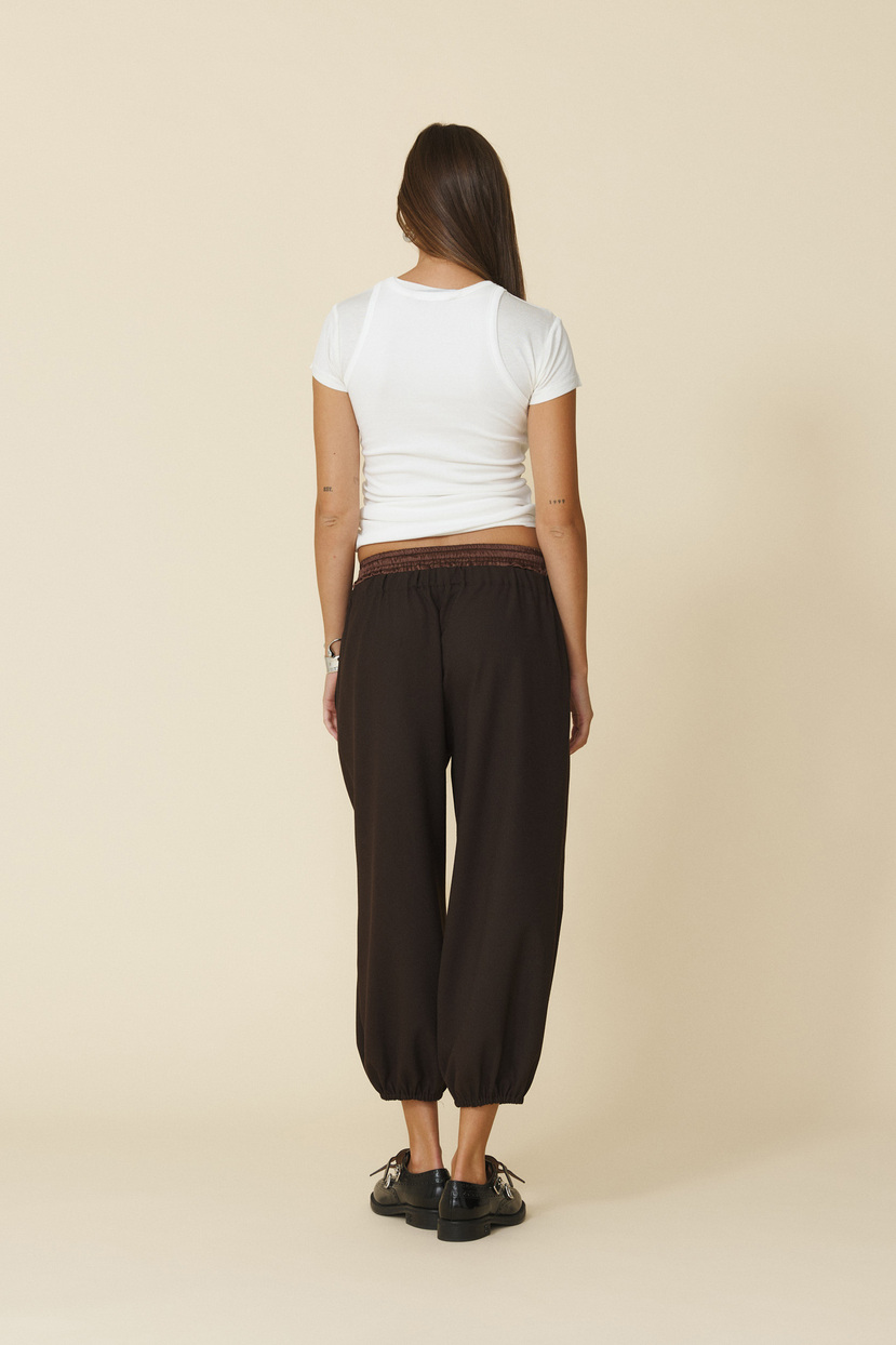 Brown Relaxed-Fit Pants With Silk Insert At The Waistband