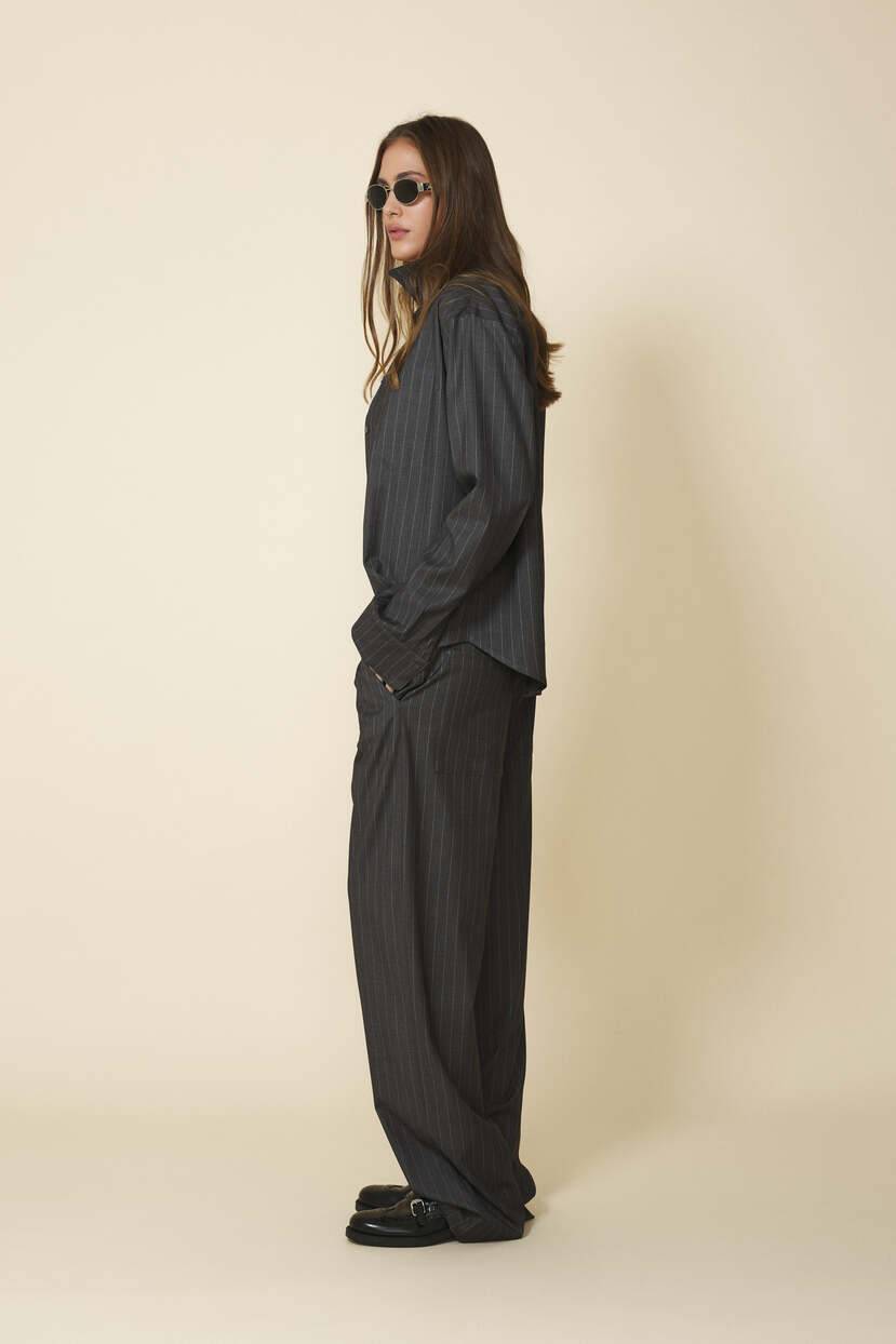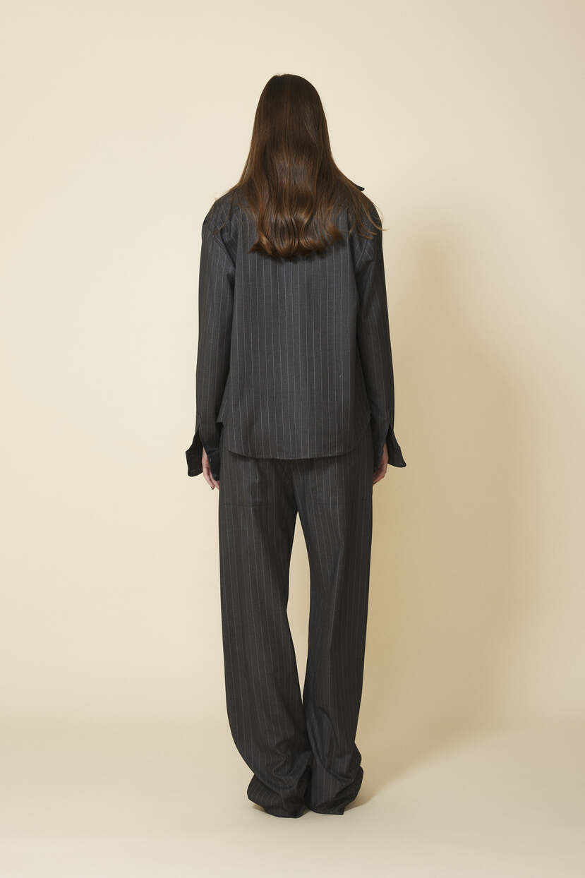HOME - CLOTHING - Pants - Casual-Grey Striped Relaxed-Fit Trousers With Elasticated Hems - FW25