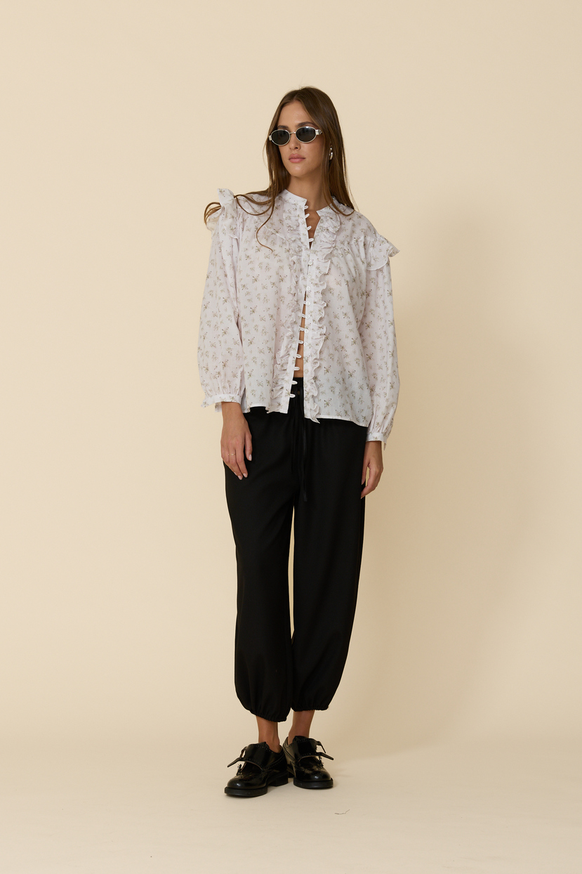 HOME - CLOTHING - Tops - Blouses-Light Rose Printed Floral Shirt Blouse