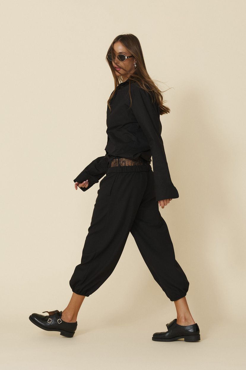 Relaxed-Fit Pants With Lace Insert At The Waistband